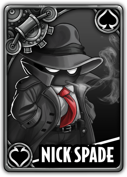After a decade of solving the city’s most baffling mysteries, Nick Spade has established himself as Zephyr City’s premier private investigator. This brooding dick has a veiled past, an insightful mind, a stalwart sense of justice, and a dapper black hat. Nick’s cases have taken him to places all over the city from the city pound to City Hall. With his quick wit and quicker mind, there isn’t a thing that makes it past this detective’s keen eyes. Those who know him usually call him Nick. Those who don’t simply refer to him as the Ace of Spades.
