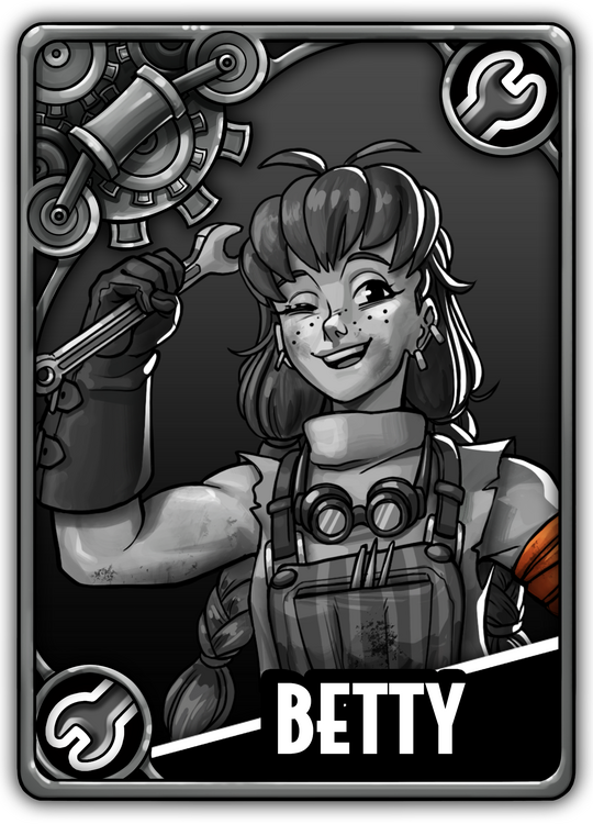 Betty Lockheart is a young upstart inventor and creator of Betty-Bots TM Betty is a scatterbrained ramble master with a caring soul: traits which also come to life in the personalities of her creations. She looks up to her uncle Thomas – another famous engineering businessman in Zephyr City – as the epitome of intelligence and success. Her uncle has a strong influence on Betty, but the love she has for her father Sherman is unmatched. The two have a strong bond. Even after she strode out to find success on her own in Zephyr City, the two make time to meet every week at their favorite diner for breakfast. When Sherman never showed up to their regular meetup, Betty was sure something was wrong. Months later, the rest of the Z.C.P.D. has given up looking for the lost officer. With nowhere left to turn, Betty ends up on the stoop of Zephyr City’s Ace of Spades – Gizbo in tow – to hopefully find what has become of her wayward father.